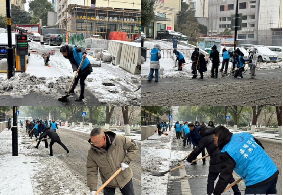 1月20日,岳阳市迎来强降雪,道路积雪结冰。求索街道党工委迅速组织全体党员干部奔赴邕园路等重点路段,开展铲雪除冰行动。