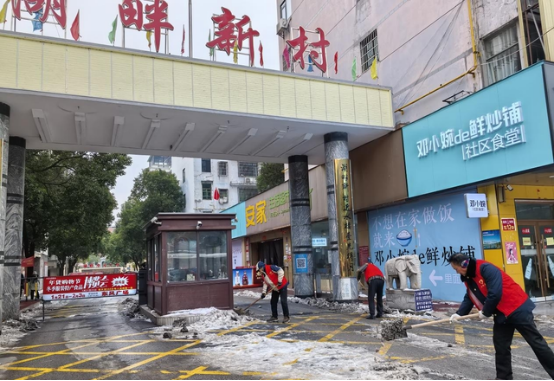1月21日,寒潮携雪而至,温情驱散严寒。湖畔新村迅速掀起铲冰除雪热潮,以党建引领+物业联动模式守护业主出行安全。