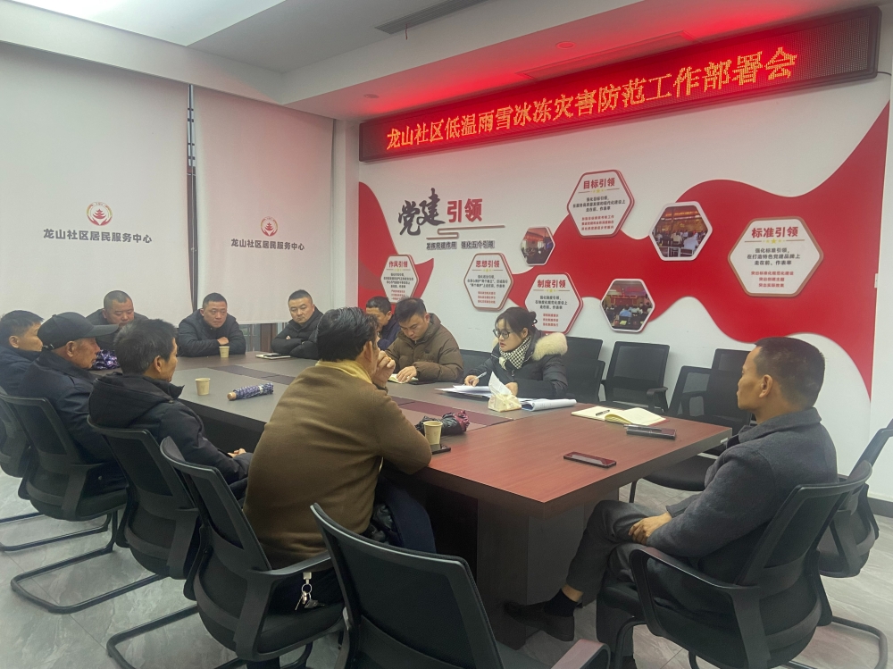 在专题部署会上,龙山社区负责人传达了上级部门关于低温雨雪冰冻灾害防范应对的工作要求,分析了当前天气变化趋势及辖区防灾工作重点。明确提出“三个到位”工作要求:责任落实要到位,成立应急工作专班,划分3个责任片区;隐患排查要到位,聚焦老旧房屋、辖区道路、供水供电设施等关键部位,建立隐患台账并销号整改;物资保障要到位,补充融雪剂、铁锹、棉被、应急食品等物资,组建10人应急抢险队伍,确保随时待命。会议还强调要严格落实24小时值班值守制度,保持通讯畅通,确保突发情况第一时间响应处置。