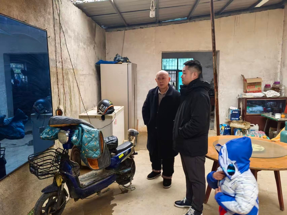 在中桥组居民任爷爷家中,工作人员仔细检查外墙是否有脱落风险,提醒居民注意出行安全;对辖区易结冰路段,提前设置警示标识,告知物业做好除雪准备。