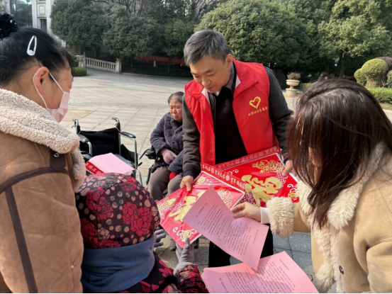 “李娭毑,这副春联您收好,红红火火迎新年,咱今年小区里都不放鞭炮,既安全又环保,年味儿一点都不差!”1月28日下午,云梦社区党组织牵头在恒大名都小区开展禁炮宣传暨新春送春联活动,党员志愿者们身着红马甲,把提前备好的红彤彤春联送到居民手中,将禁燃禁放宣传与新春送福活动“打包”开展,以党建引领为马年新春筑牢平安防线、增添暖心年味。