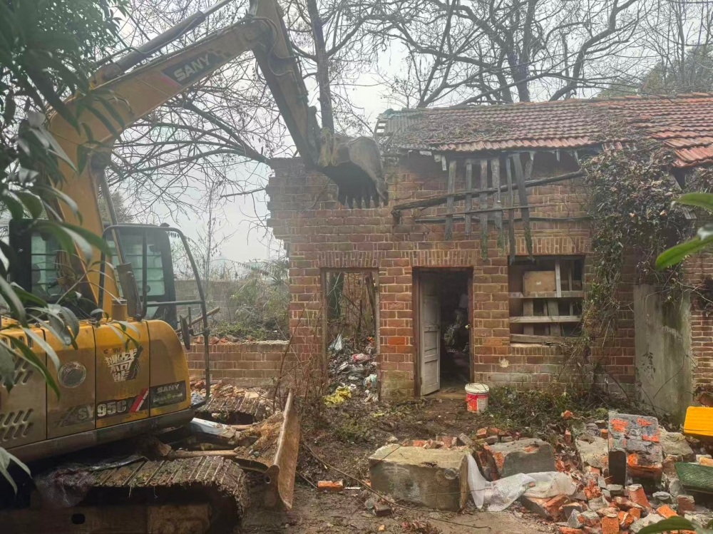 在现场,挖掘机有序作业,危房被逐步拆除,本次行动共清理危旧建筑 200 余平方米。此次拆除不仅消除了安全风险,也为后续优化南湖公园环境、提升社区宜居品质奠定了基础。