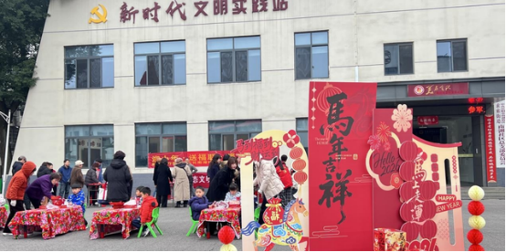 活动现场暖意融融,四大特色环节亮点纷呈。“笔墨传情”写春联环节,书法爱好者与专业书法家挥毫泼墨,免费为居民书写春联、福字,一笔一画间尽显年味,居民们手持墨香四溢的春联,笑意满盈。“甜意满盈”糖画体验区人气爆棚,更是小朋友们的欢乐天地,孩子们亲手勾勒新春造型,酥脆香甜的糖画承载着童年回忆与新春喜悦,脸上满是幸福的笑容。