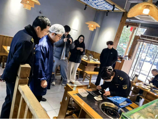 本次专项行动精准聚焦群众关注度高的火锅店、卤味店等餐饮单位,将火锅底料、卤料卤汁、自制高汤等食品原辅料列为核心检查重点,严密排查非法添加、使用罂粟壳等违法行为。行动期间,执法人员共检查餐饮企业20余家、食品经营企业 2 家,运用罂粟壳快速检测盒,对现场抽取的火锅调料包、卤水等 14 批次样品进行筛查,所有检测指标均显示为阴性。