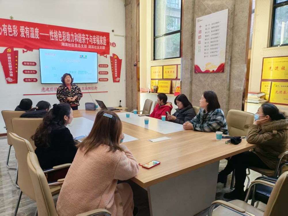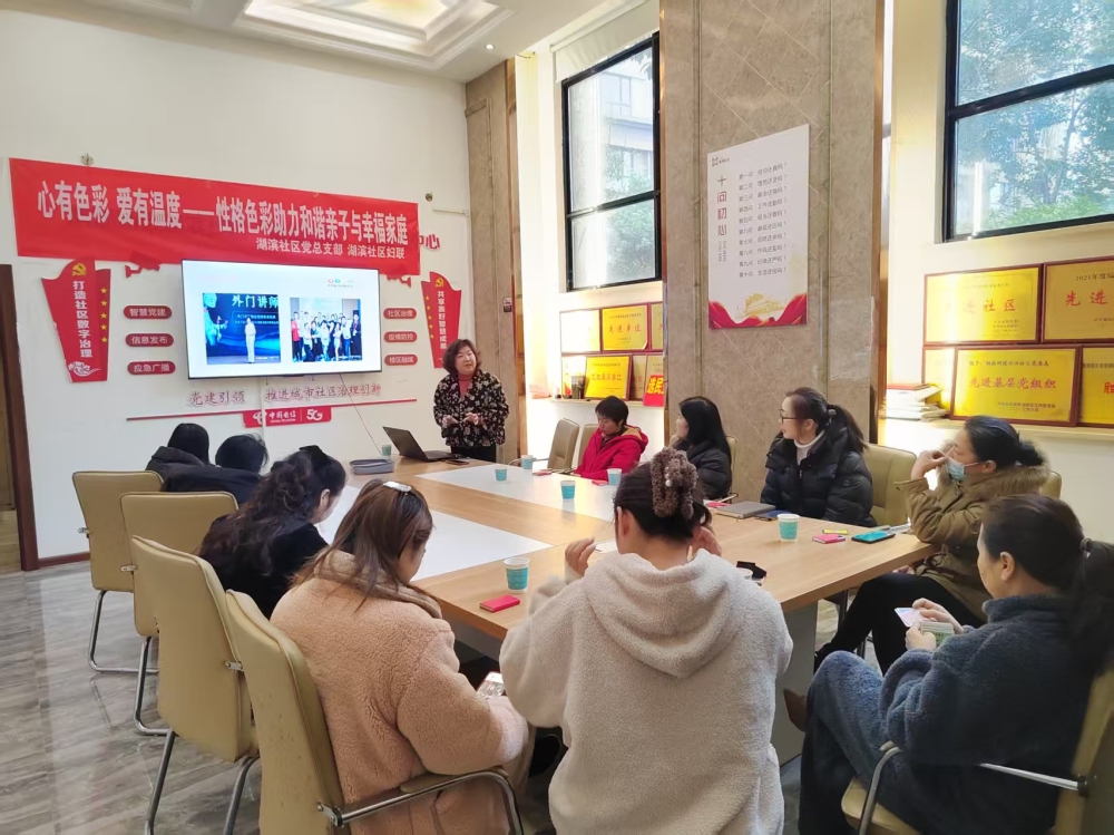 活动伊始,湖滨社区党总支、社区妇联相关负责人向到场的女性居民致以节日的问候与美好的祝福,感谢大家在家庭育儿、邻里互助、社区治理中展现的巾帼担当与奉献精神。同时点明本次活动初衷,聚焦当下家庭亲子沟通痛点、家庭相处难题,借助性格色彩专业知识,帮助大家读懂自我、理解家人,尤其是拉近与孩子的心理距离,用科学方法化解沟通隔阂,让家庭爱意更浓、关系更睦,切实把暖心服务落到居民心坎上。
