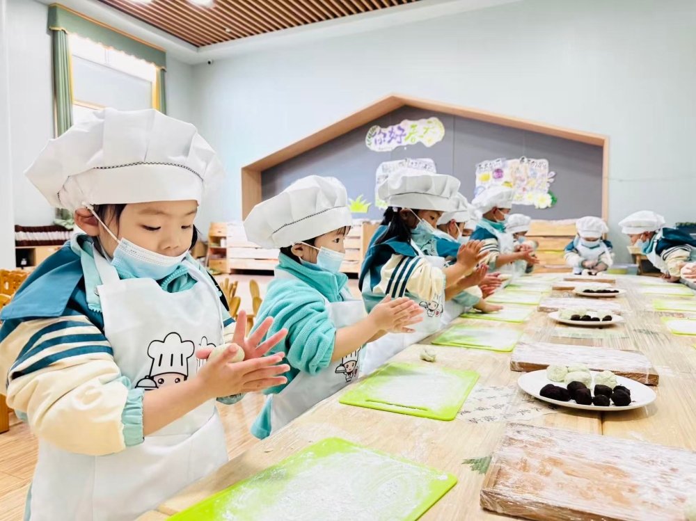 弥漫着春日气息的教室里,孩子们化身“传统文化小使者”,开启了一场奇妙的手作之旅。一阵飘香中,一场“舌尖上的清明”率先上演。孩子们亲手和面、包馅,制作出一个个清香软糯的青团,一口下去,满是滋味与传承。