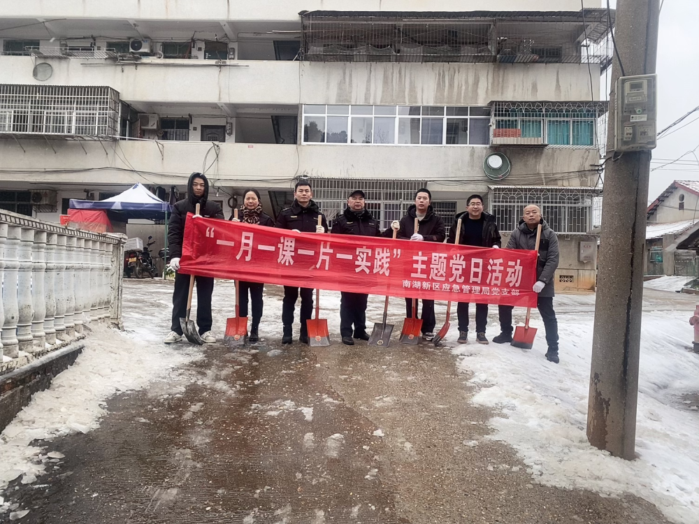 寒潮裹挟着低温雨雪突袭全城,致使各处道路积雪结冰,给居民日常出行埋下安全隐患。为保障群众出行平安,1月20日,岳阳市南湖新区应急管理局党支部以党建为引领,联动飘尾社区,召集党员志愿者与热心居民,打响一场铲冰除雪的“暖心战役”。