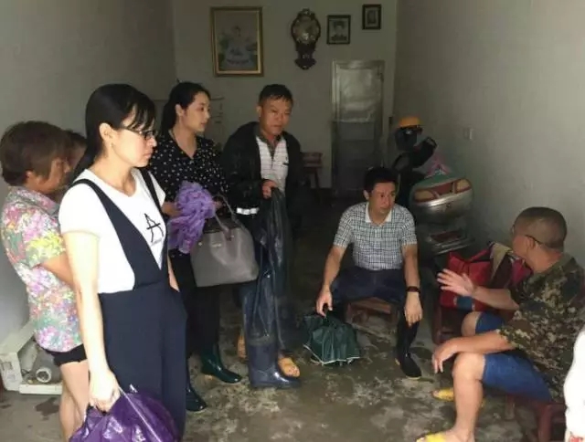 街道工委书记葛明、工委委员胡铂雅、民政办主任唐湘陵安抚受灾群众情绪