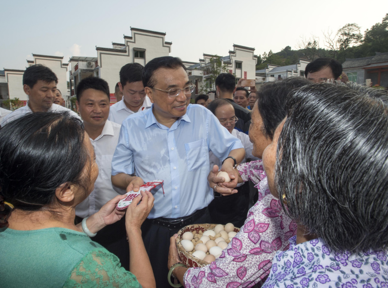 8月22日,李克强总理来到江西瑞金叶坪乡黄沙村华屋小组,考察农村危旧土坯房改造等民生改善工程的进展。考察期间,江西全省发布高温黄色预警,局部地区最高气温突破38℃,总理的衬衫已被汗水湿透。