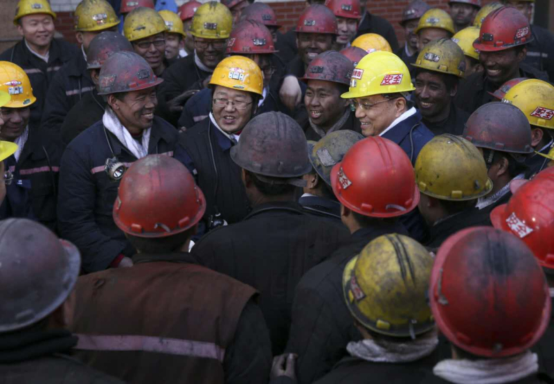 1月5日,李克强来到山西焦煤集团官地矿,下井前遇到刚出井的矿工。在满脸黝黑的矿工人丛中,总理紧紧握着他们的手说:“你们自己常年在黑暗的井下工作,却照亮了他人。有人说你们是煤黑子,我说你们是煤亮子。煤炭工人不仅是山西的脊梁,也是国家的脊梁。”