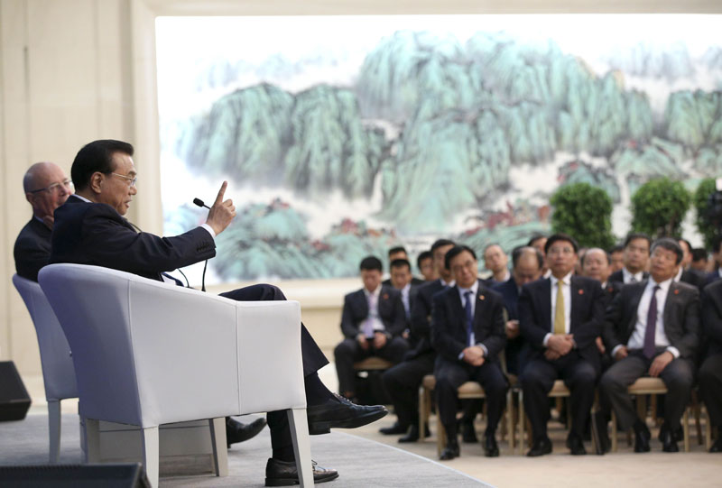 6月28日上午,国务院总理李克强在天津梅江会展中心同出席2016年夏季达沃斯论坛的300多名各国企业家代表举行对话会。总理就中国经济形势、结构性改革、制造业升级、金融和资本市场等问题做了一一回应。李克强强调,中国将继续按照市场化、法治化方向推动资本市场发展,完善金融监管,防范系统性、区域性金融风险。