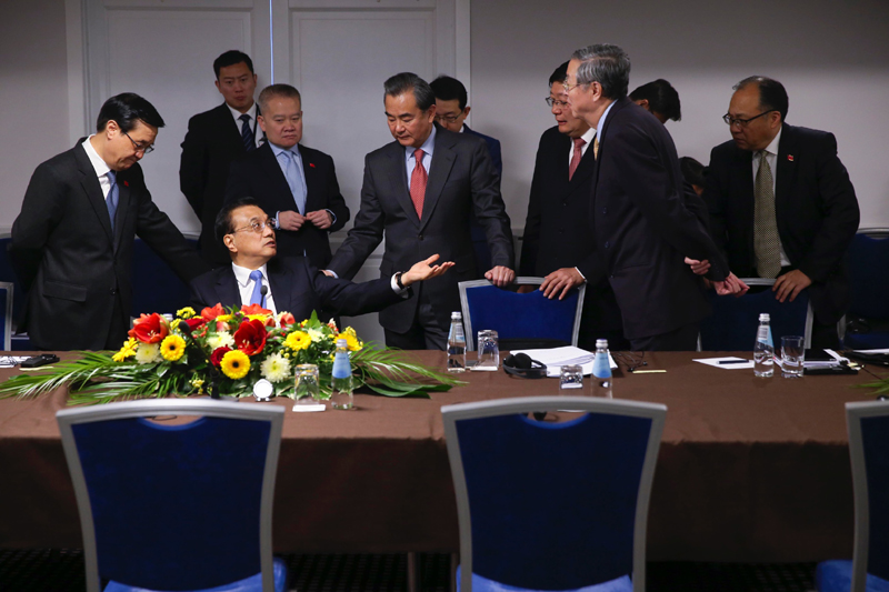 7月13日至16日李克强总理访问蒙古国并出席第十一届亚欧首脑会议期间,在结束了上午的会见后,总理也并没有歇下来,还在忙着与部长们总结工作。