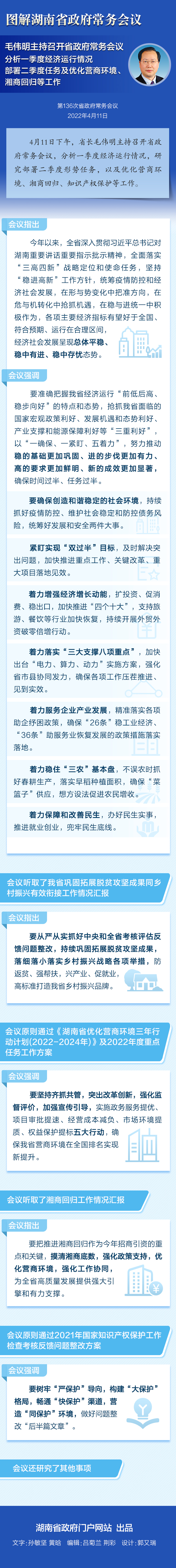 【图解】4月11日省政府常务会议:分析一季度经济运行情况 部署二季度任务及优化营商环境、湘商回归等工作