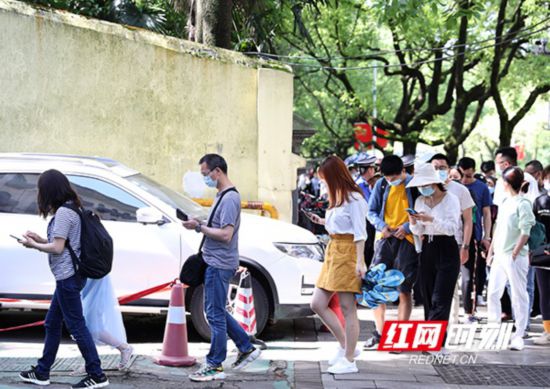 湖南省博物馆门外排起了长龙,等待进馆的队伍一直沿着东风路排到了烈士公园西门。
