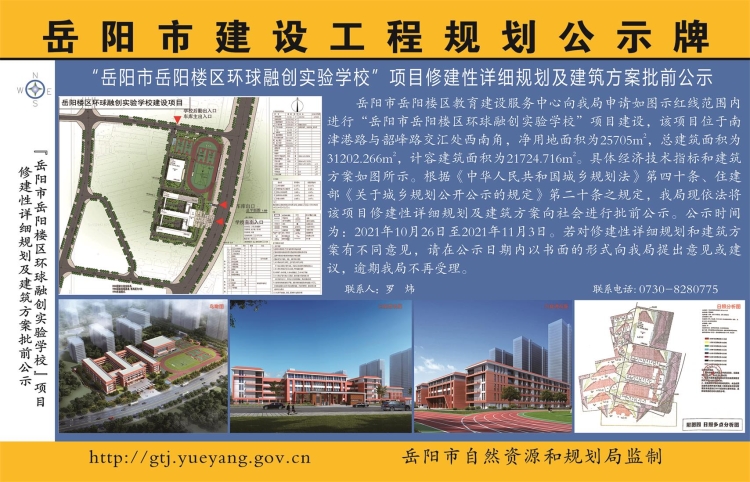 环球融创实验学校项目修建性详规及建筑方案批前公示