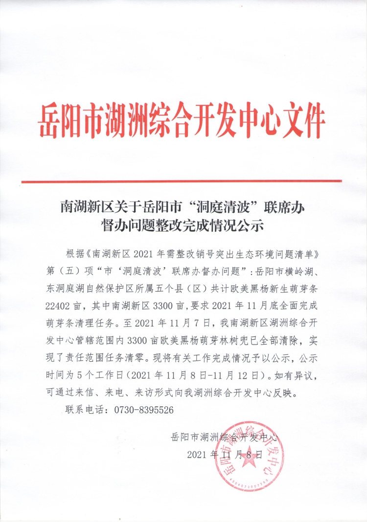 南湖新区关于岳阳市“洞庭清波”联席办督办问题整改完成情况公示