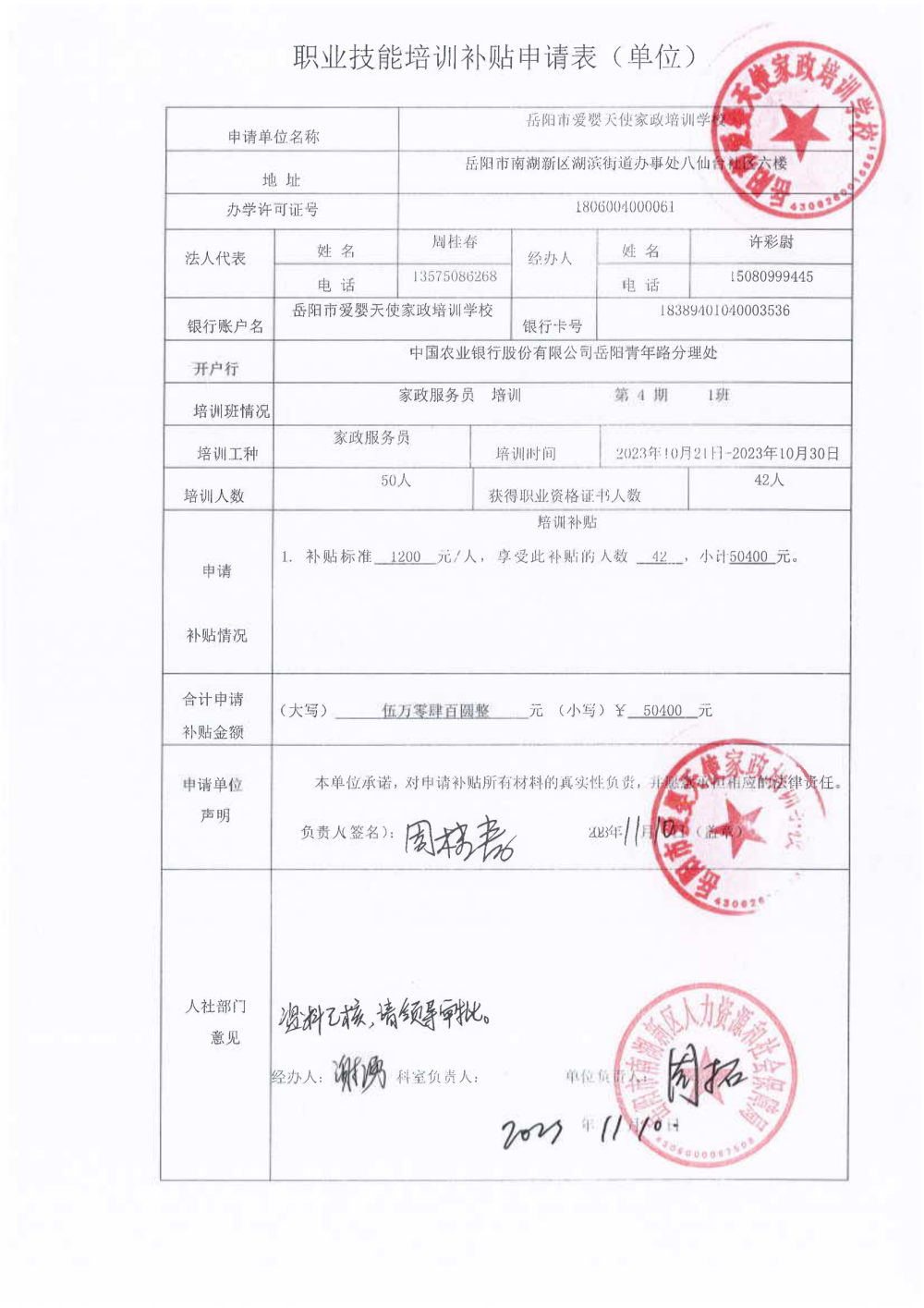 职业技能培训 补贴申请表11
