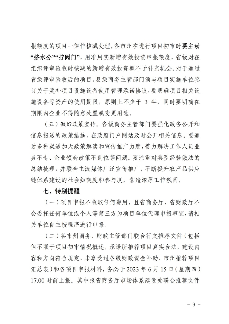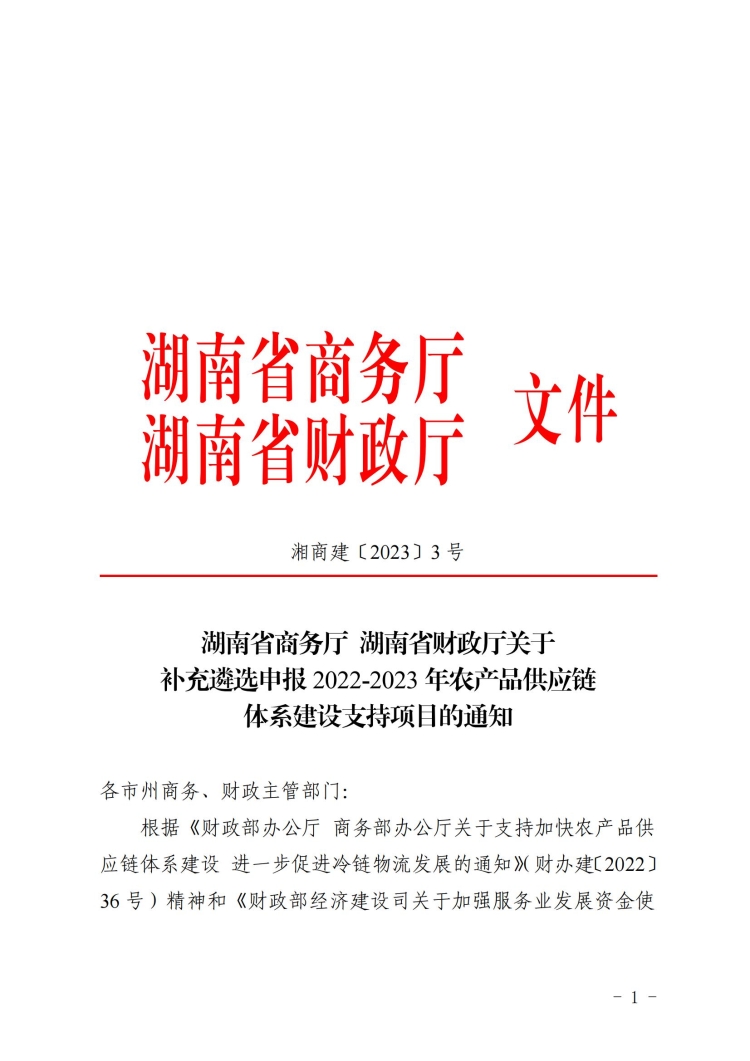 《关于补充遴选申报2022-2023年农产品供应链体系建设支持项目的通知》(湘商建[2023] 3号).pdf