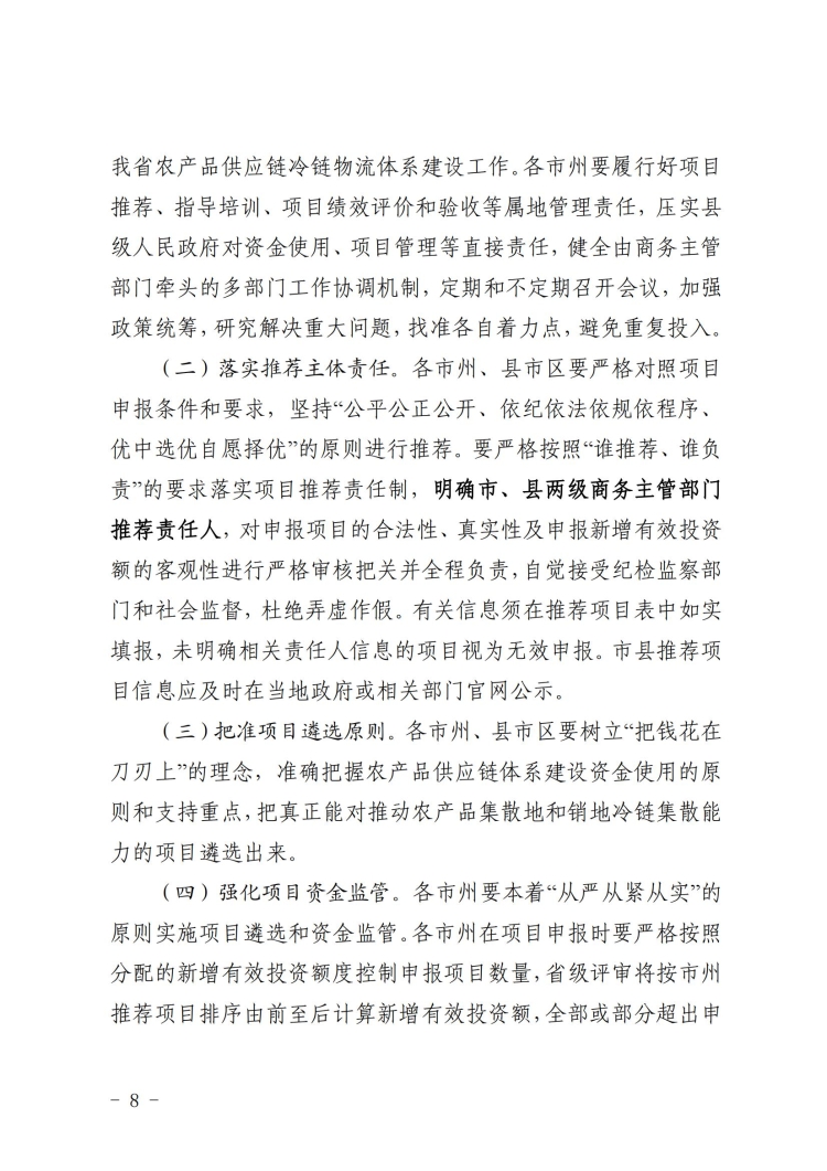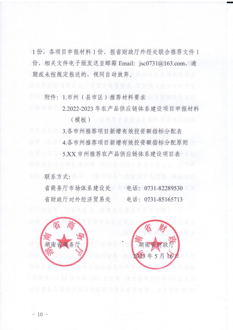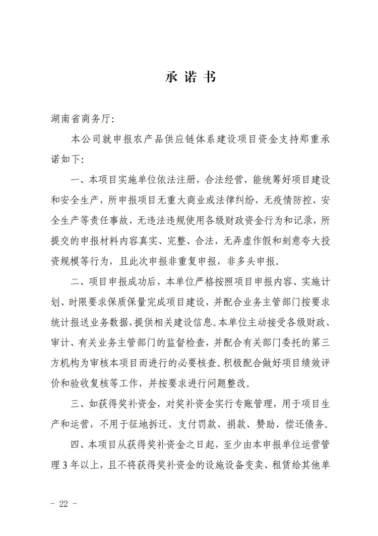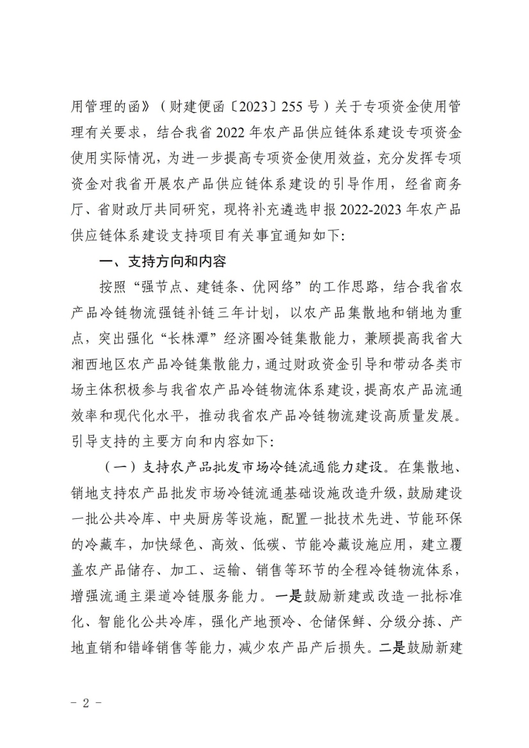 湖南省商务厅 湖南省财政厅关于补充遴选申报 2022-2023 年农产品供应链体系建设支持项目的通知