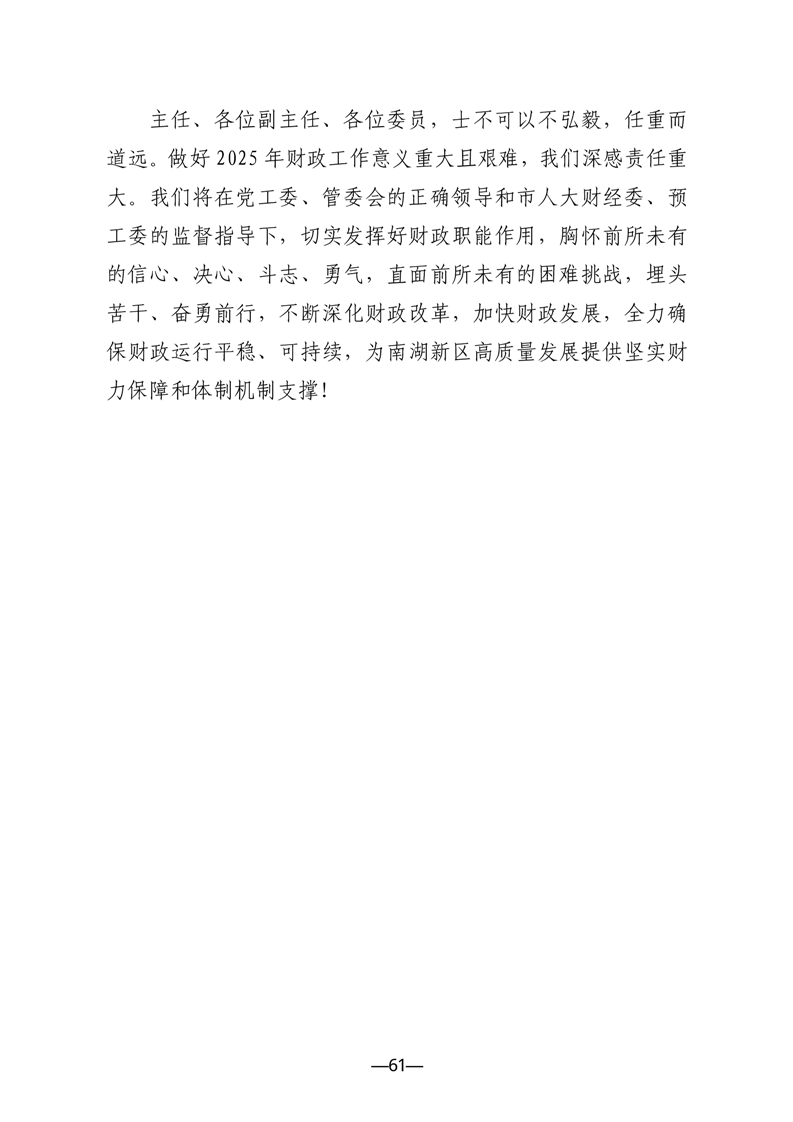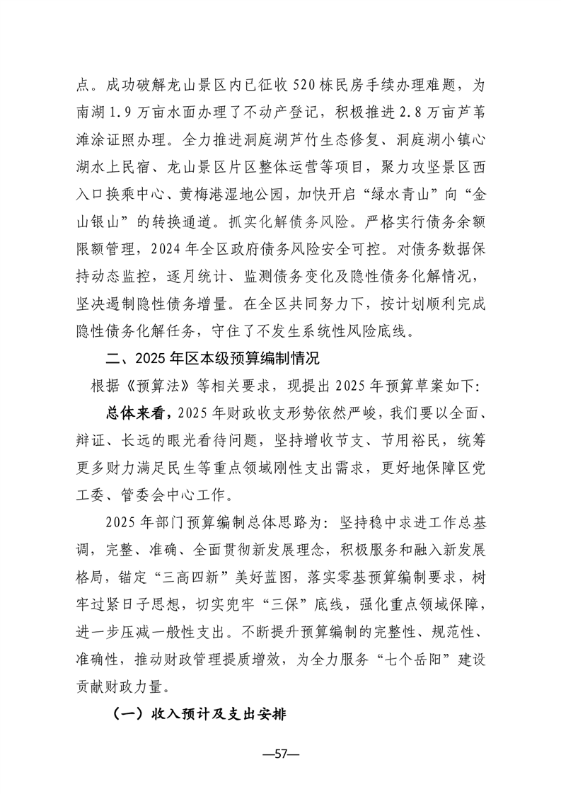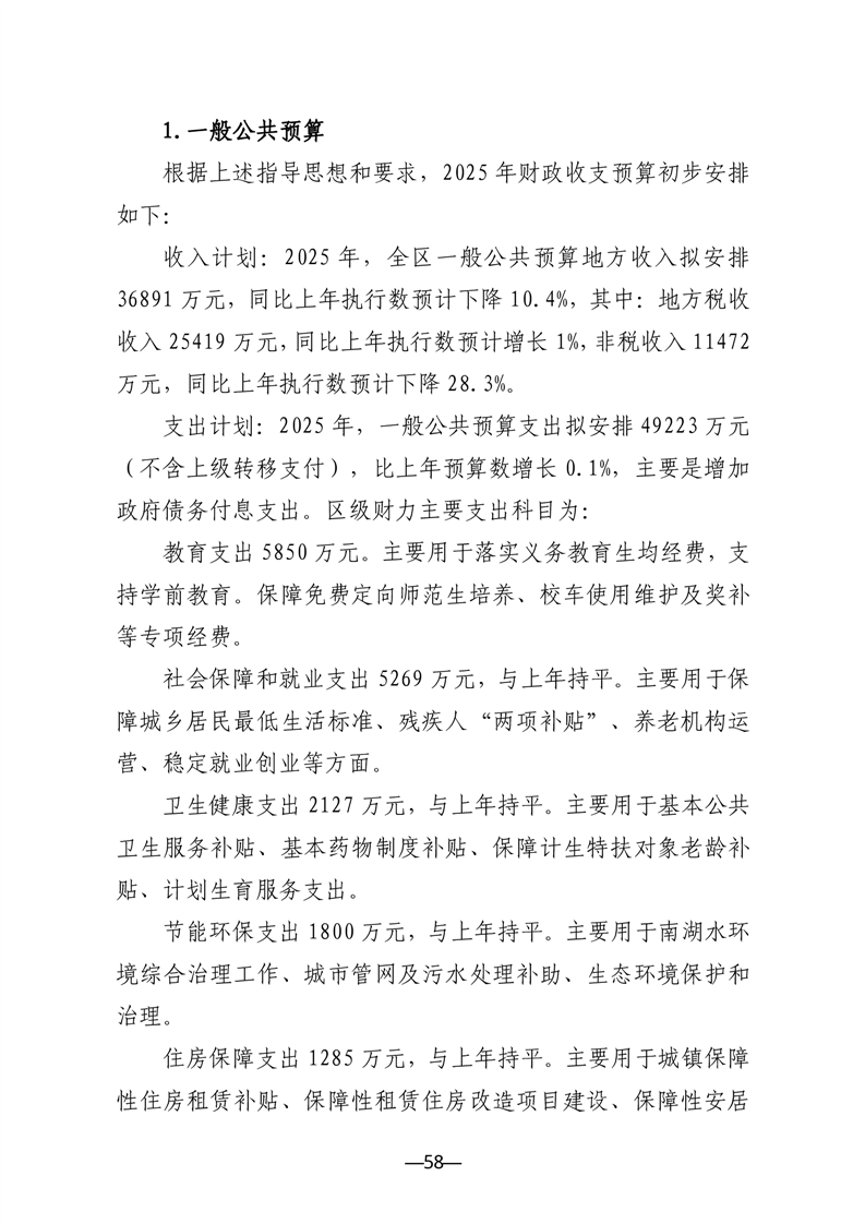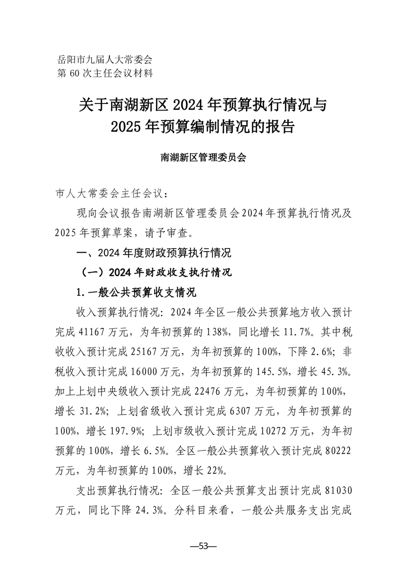 关于南湖新区2024年预算执行情况与2025年预算编制情况的报告