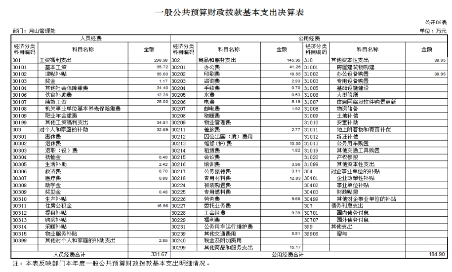 本部门2017年度一般公共财政拨款基本支出516.57万元。其中:人员经费331.67万元,较上年增加185.85万元,主要原因是职工社会保险费及人员工资增加。人员经费用途主要包括基本工资、津贴补贴、社会保障缴费等。公用经费184.9万元,较上年增加55.59万元,主要原因是行政事务增多物价上涨、基础建设任务多。公用经费用途主要包括办公费、印刷费、物管费、水电费、差旅费、设备购置等。