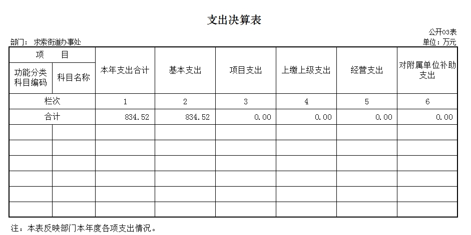 2.年度一般公共预算财政拨款支出:834.52万元,包括①基本支出834.52万元;②项目支出0万元。