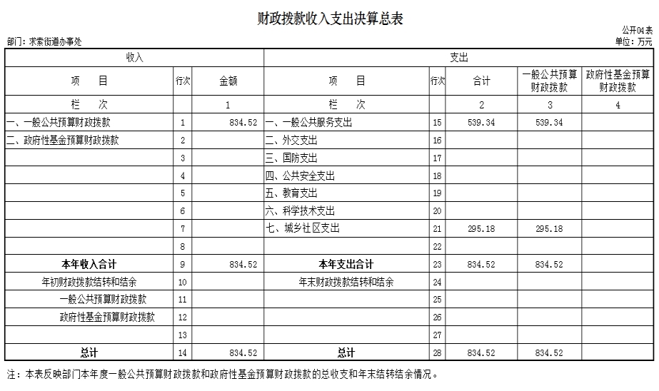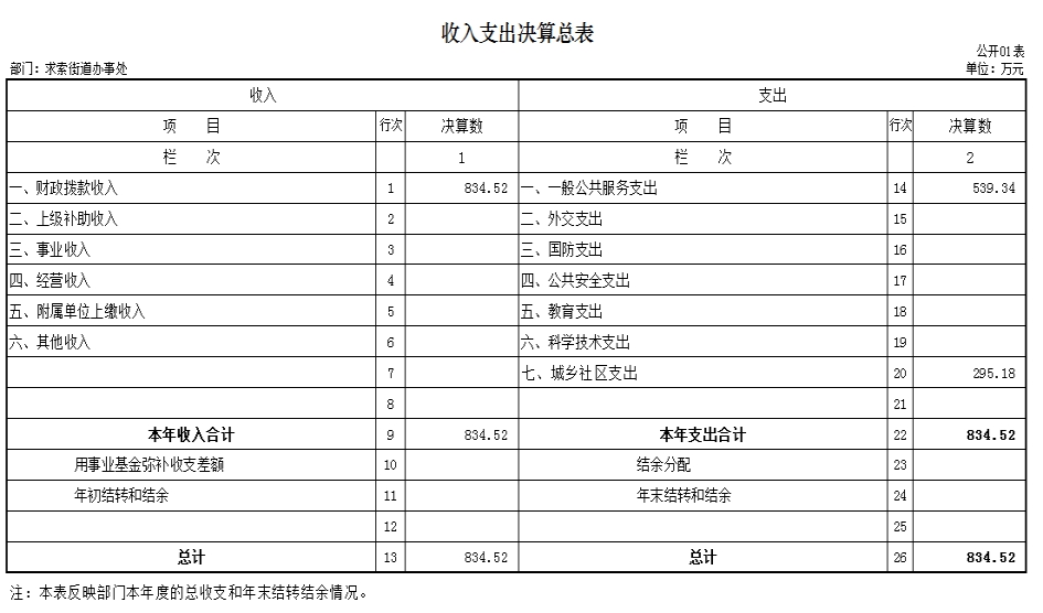 2017年度收支决算情况。总收入:834.52万元,其中一般公共预算财政拨款834.52万元;总支出:834.52万元,其中:人员经费649.53万元,日常公用经费184.99万元.