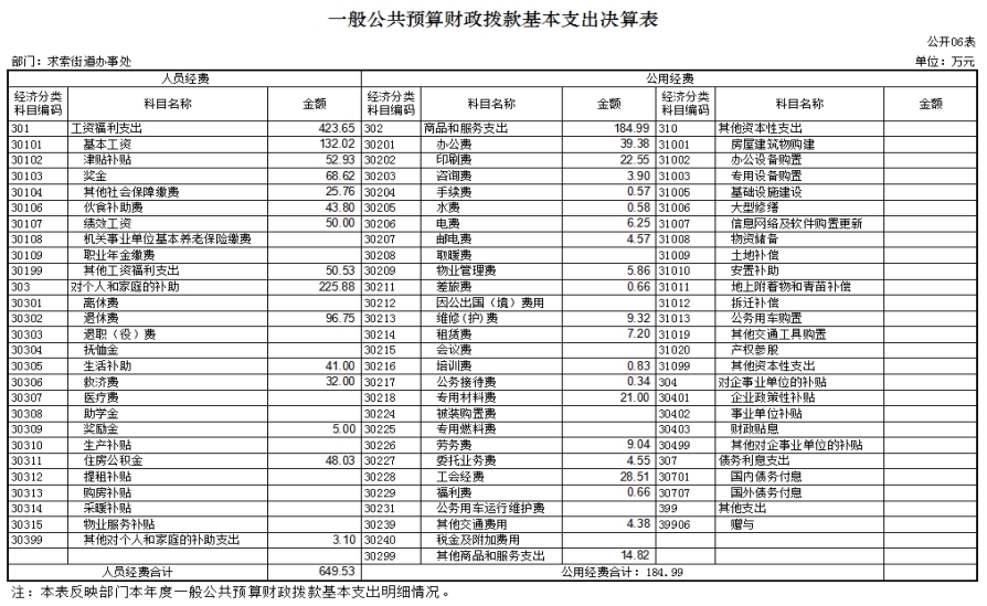 4.年度机关运行经费决算情况:全年机关运行经费情况834.52万元。其中:人员经费423.65万元,商品服务支出184.99万元,对个人家庭补助225.88万元。