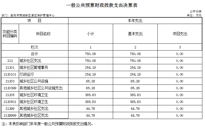 2、2017年一般公共预算财政拨款支出情况。基本支出750.08万元。