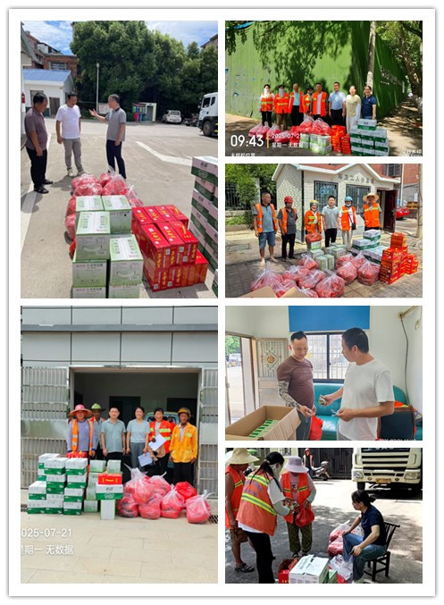 连日来,岳阳地区高温天气持续“加码”,户外骄阳似火,热浪滚滚。为切实做好高温天气下的劳动保护工作,保障一线职工的身体健康和作业安全,7月21日,南湖新区城市管理事务中心组织开展“夏日送清凉”活动,为坚守在高温一线的环卫、市政工人们送去了矿泉水、金银花、藿香正气水、王老吉等防暑降温物资,用实际行动传递关怀,护航安全生产。