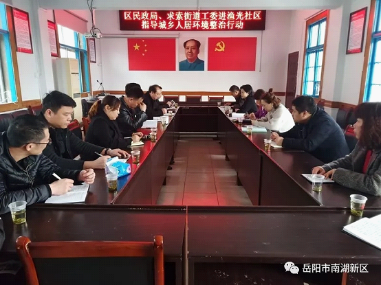 当天下午,一行人来到上下渔光居民点就环境整治情况进行了现场查看,并在渔光社区召开了三级人居环境整治工作碰头会议。会上,渔光社区书记杜笑红就该社区环境整治工作进展情况及目前存在困难和问题进行了汇报。
