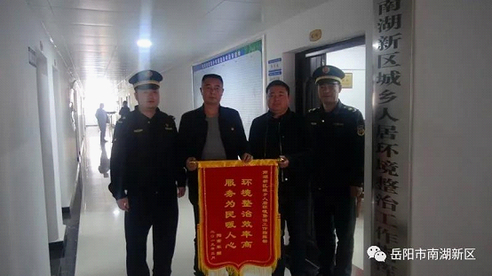 3月26日下午,阁子市社区居民陶常军将一面写着“环境整治效率高,服务为民暖人心”的锦旗送到区城乡人居环境整治工作指挥部办公室,感谢政府一如既往地为民办实事,还群众一个美丽舒适的居住环境。