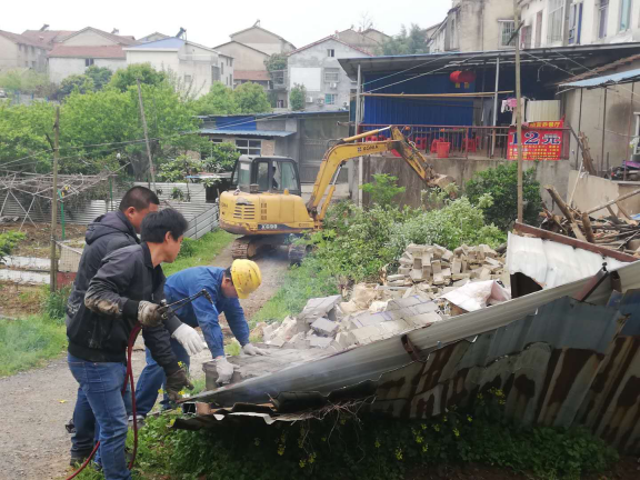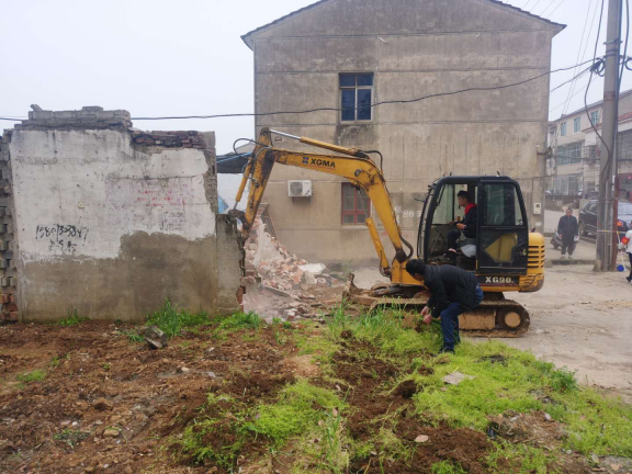 用行动建设美丽社区,用汗水守护清洁家园。4月13日上午,湖滨社区党总支书记刘普查和社区副书记、居委会主任冯帆组织社区全体工作人员和施工人员对于位于G240路段湖滨大道车站路入口处,一栋145平方米的“断壁残垣”违建空心房实施拆除。随着挖掘机的长臂挥舞,南湖新区湖滨街道湖滨社区违建多年的145平方米的 “空心房”,顷刻被夷为平地。