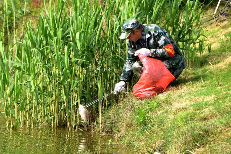 当天的护水志愿行动,南湖新区辖区有50多名退役军人报名参与,绝大多是党员,其中年纪最大的72岁。他们身着迷彩服,走在南湖边上,手拿火钳、垃圾袋等,沿南湖月亮岛清理白色垃圾,成为南湖一道亮丽的风景线。退役军人许龙关虽身体抱恙,之前备受退役军人事务局关爱,听说有志愿行动,第一个报名参加。退役老兵葛纪学讲参加这个活动,看到有机会和老战友一起交流,也加入了志愿行动行列。柳贵山老当益壮,他说:“我也想通过自己的行动,向全区居民发出倡议:人人争当守护美丽南湖的宣传者和践行者。今后将在家门口继续守护好南湖生态!”