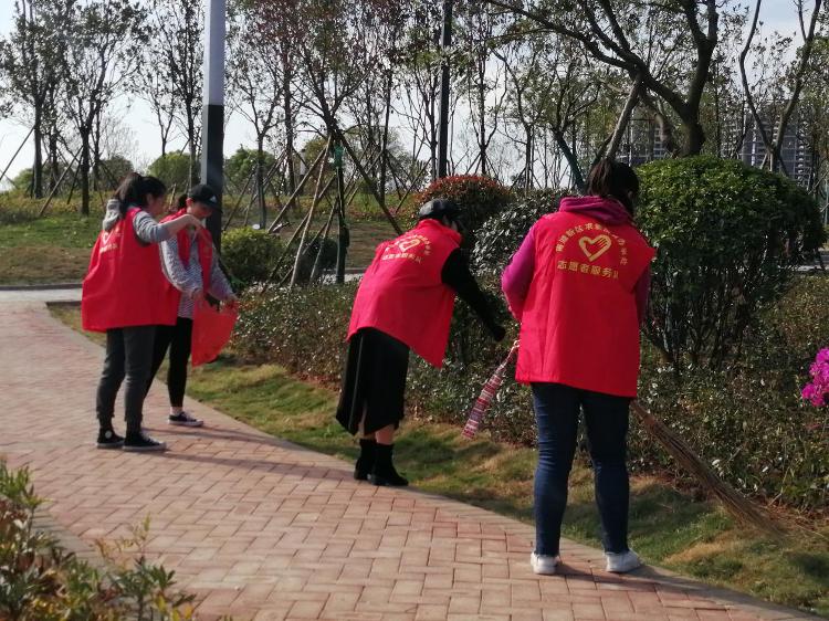 为大力弘扬“奉献、友爱、互助、进步”的志愿精神, 4月14日下午,求索街道文明办组织街道志愿者在赊月公园开展以“改善环境卫生,享受健康人生”为主题的清洁家园志愿服务活动。