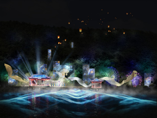 项目以“诗境·仙境·秘境”为叙事轴线,融合诗词意境与洞庭传说,通过声光电艺术与实景演艺再现千年文脉;采用游船观演创新模式,打造水岸联动沉浸场景,带领游客以月光为舟,以诗词为桨,在数字光影技术构建的移动式水岸联动沉浸场景中穿越时空,感受大美江湖,体验岳阳独特的历史文化魅力,开启一场浪漫奇幻的夜游之旅。