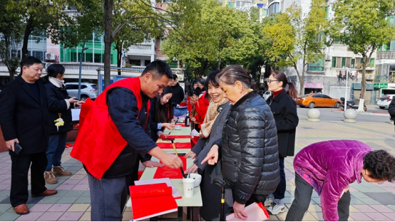 活动现场,红纸翻飞,墨香四溢。社区邀请了多位书法爱好者,他们挥毫泼墨,将一幅幅寓意吉祥、祝福满满的春联呈现在大家眼前。居民们纷纷驻足观赏,惊叹于书法家们那精湛的毛笔技巧。有的挑选自己喜欢的春联带回家,有的则现场请书法家为自己定制专属春联,居民们欢声笑语不断,共同感受传统文化的魅力。以表达对新一年的美好期盼。