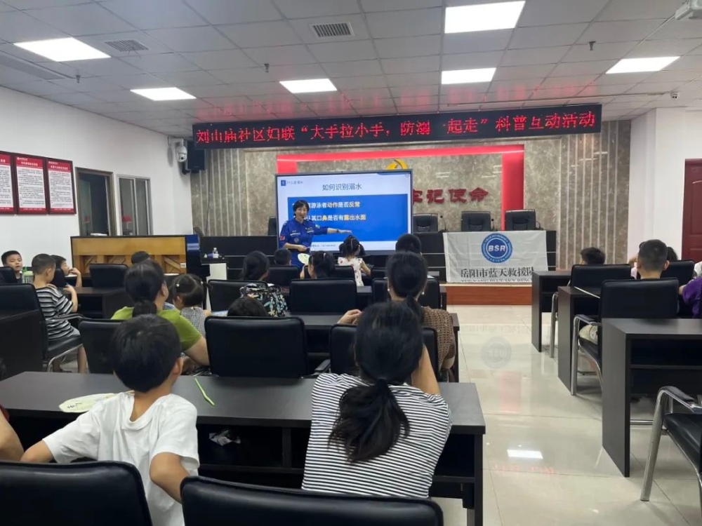 夏日炎炎,溺水事故进入高发期。7月23日,为切实筑牢家庭防溺水安全防线,南湖新区刘山庙社区妇联精心组织了 “大手拉小手,防溺一起走”亲子科普活动,邀请社区30余组亲子家庭共同参与,通过知识学习、情景模拟和互动体验,让防溺水安全意识深植每个家庭心中。