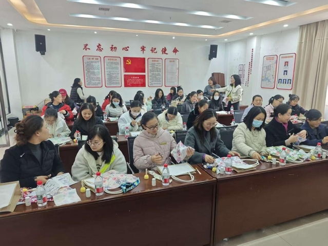 12月11日上午,在岳阳市南湖新区湖滨街道雷公湖社区党群活动中心内,一场别开生面的就业技能培训正在火热进行。来自辖区的50多位居民围坐在一起,专注地学习手工包制作。