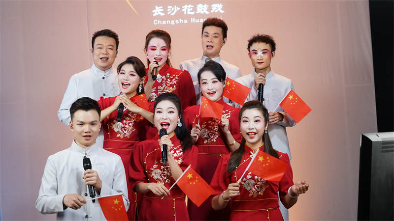 第十场直播,刘赵黔老师、胡建忠老师和花鼓戏演员们合唱。李洋摄