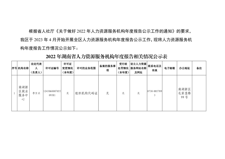 2022年湖南省人力资源服务机构年度报告相关情况公示